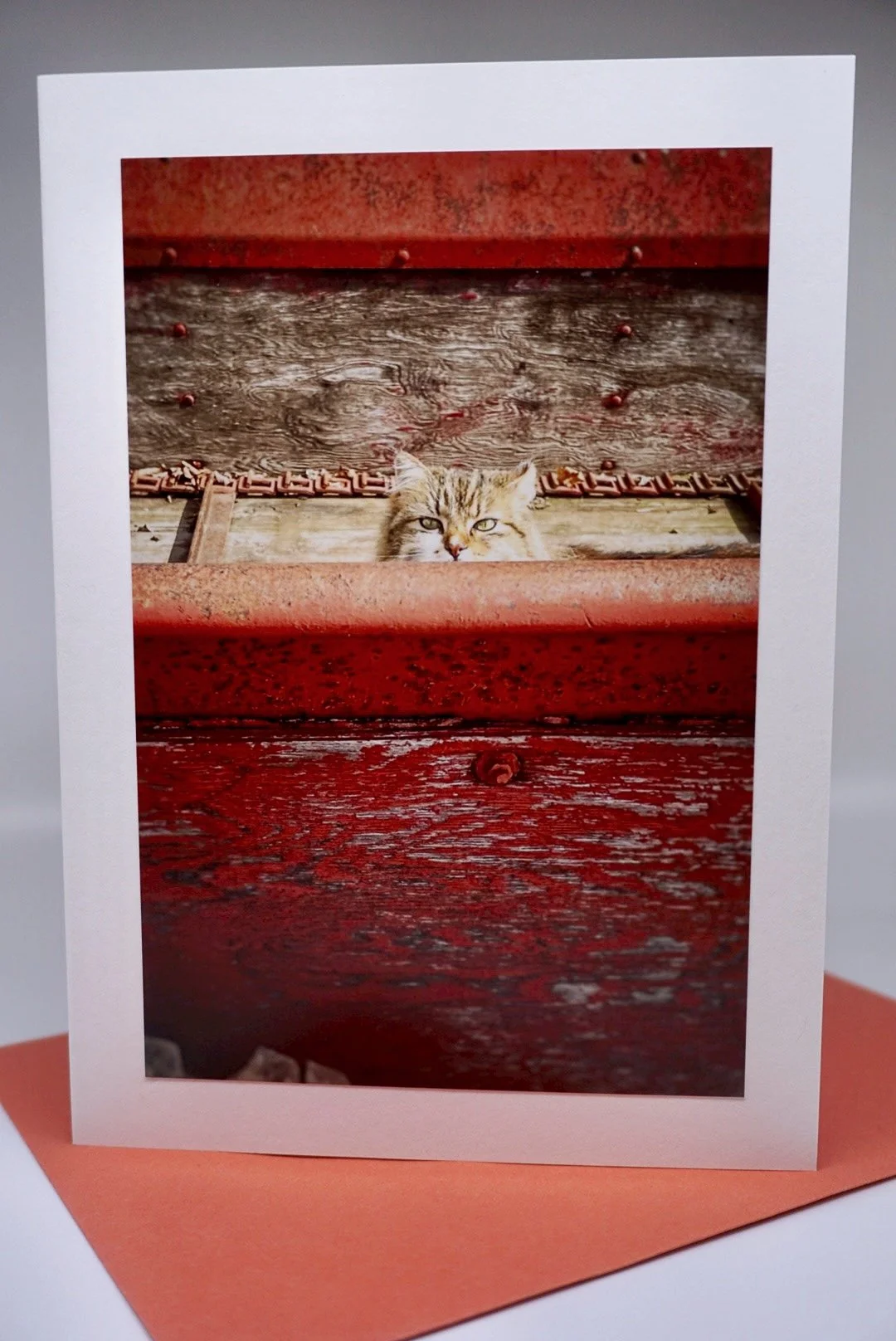 Each folded card is 5 x7 with a 4 x6 lustre photo print on the front. Inside of card is blank and the back of card has a stamp with my contact info. Envelope included.